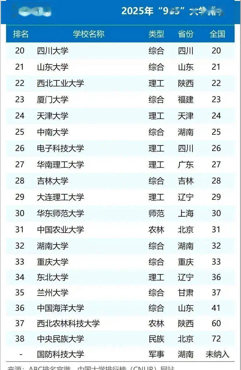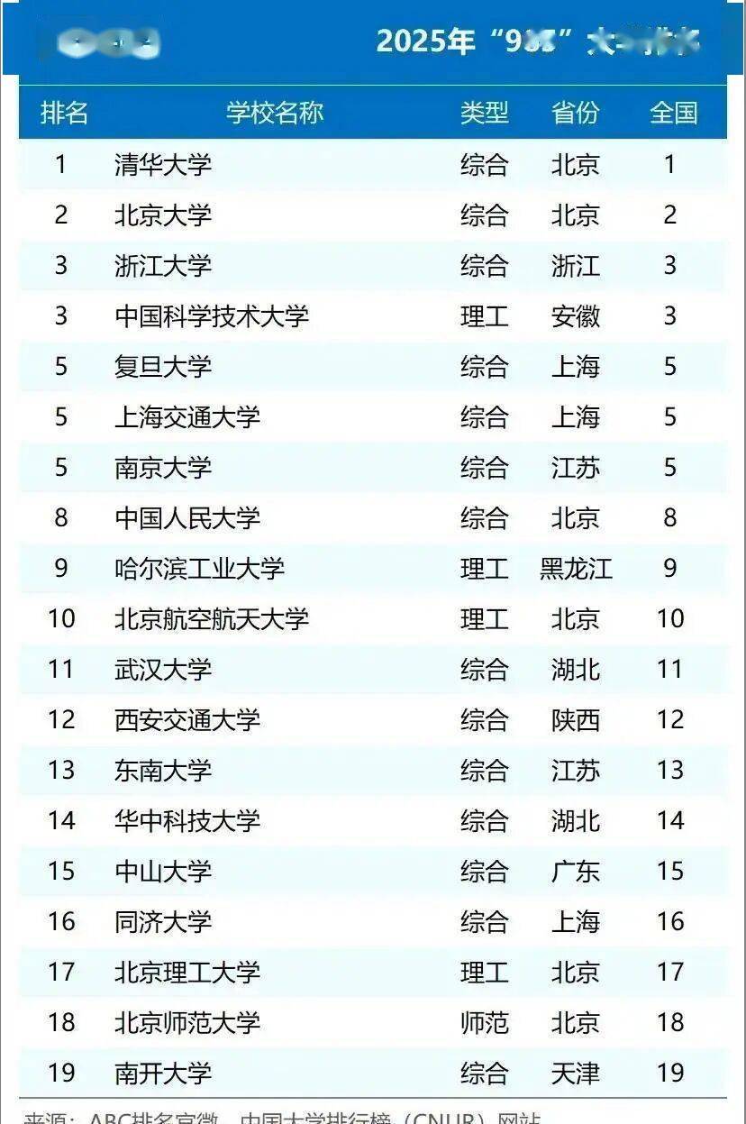 2025年中国985高校排名榜正式揭晓,这张由中国大学ABC排名组织结合CNUR配合出具的权势巨子排行榜里包含了39所入围院校,它给当下中国的顶尖高校构成了新的合作态势。这份榜单表现的不只仅只是高校分析能力的变化环境,更是察看中国高档学府成长态势的一扇窗子里面包含了良多的小细节以及小亮点。正在榜单最前,大学和大学仍然连结着劣势地位并位列第一和第二位,正在国内国际上都有着无法撼动的地位而且继续承担着引领中国的大学科研实力、学科规划以及国际化的大旗。能够说“清北”领先是时间的累积更是分析各方面能力的表现。接下来则是浙江大学和中国科学手艺大学,这两所高校并列第三名,构成“清北浙科”新四强。从科研立异到人才培育,这两所学校都有着很强的逃逐能力,正在某种程度上也刷新了大师对于“四强”高校款式的印象。