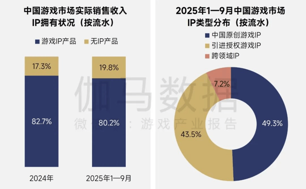 此中,2025年1—9月IP产物流水占比的小幅下滑,次要受2024年部门现象级产物拉高基数的影响,但逛戏产物无论做为IP来历,仍是做为IP改编的载体,变现潜力仍值得承认:做为IP来历,中国原创逛戏IP正在品类、题材等方面持续立异,占领市场近半份额;做为IP改编载体,小法式逛戏等新兴范畴的IP承载能力也持续被挖掘,使逛戏改编变现渠道更为丰硕。因而从持久来看,IP产物仍然会是中国逛戏财产的焦点形成。