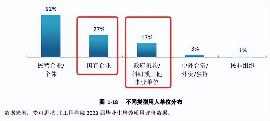 2023届结业生有27%进入国有企业,17%进入机构或其他事业单元,全体铁饭碗就业率跨越40%。